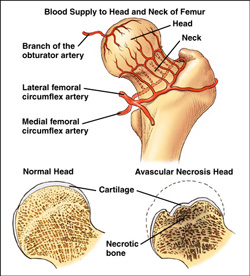 AVN is know to occur much more frequently in certain groups of patients. This includes any condition that interferes with the blood flow to the hip or increases the likelihood of a blockage in the blood vessels within the hip.